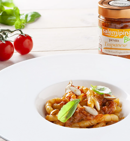 Pesto Trapanese din Roșii, Migdale, BIO Vegan, cu ulei de măsline extravirgin, Salemi Pina, 190 gr